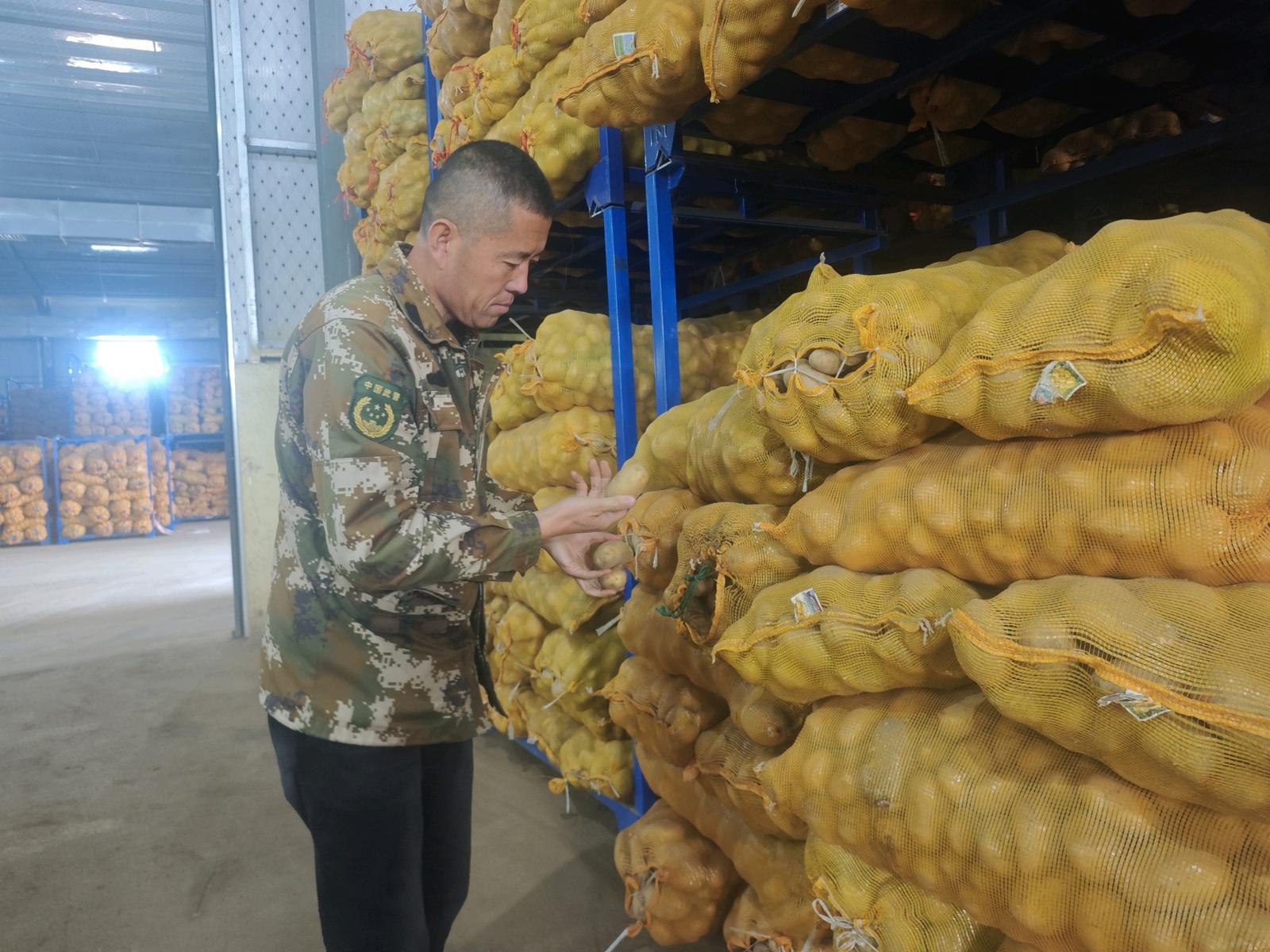 不远处,该校22级博士研究生魏涵的工作更为具体。她轻轻拨开土壤,向记者展示饱满的种薯:“我们从茎尖脱毒开始,在实验室培育脱毒苗,再移栽到温棚繁育。这套方法能从源头解决种薯退化和病害问题。” 截至目前,定西依托科技小院累计推广马铃薯优良品种280多万亩,马铃薯良种覆盖率已从65%大幅提升至92%。 一颗种薯的“科技旅程” 从实验室到温棚,从组培苗到丰收的种薯,科技的力量贯穿一颗优质种薯的“一生”。在获评2024年“中国农技协最美科技小院”的甘肃渭源马铃薯科技小院里,金灿灿的种薯堆成小山,正准备发往云南、贵州等地。